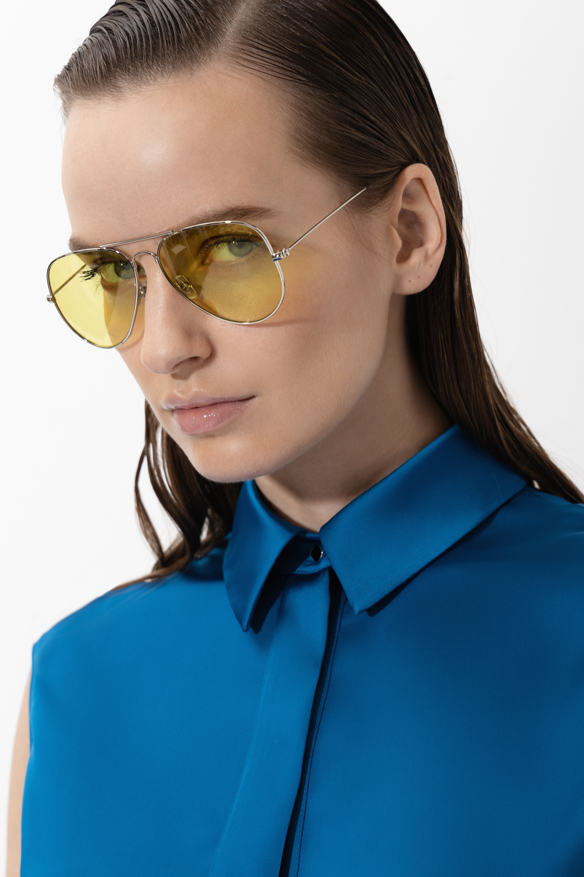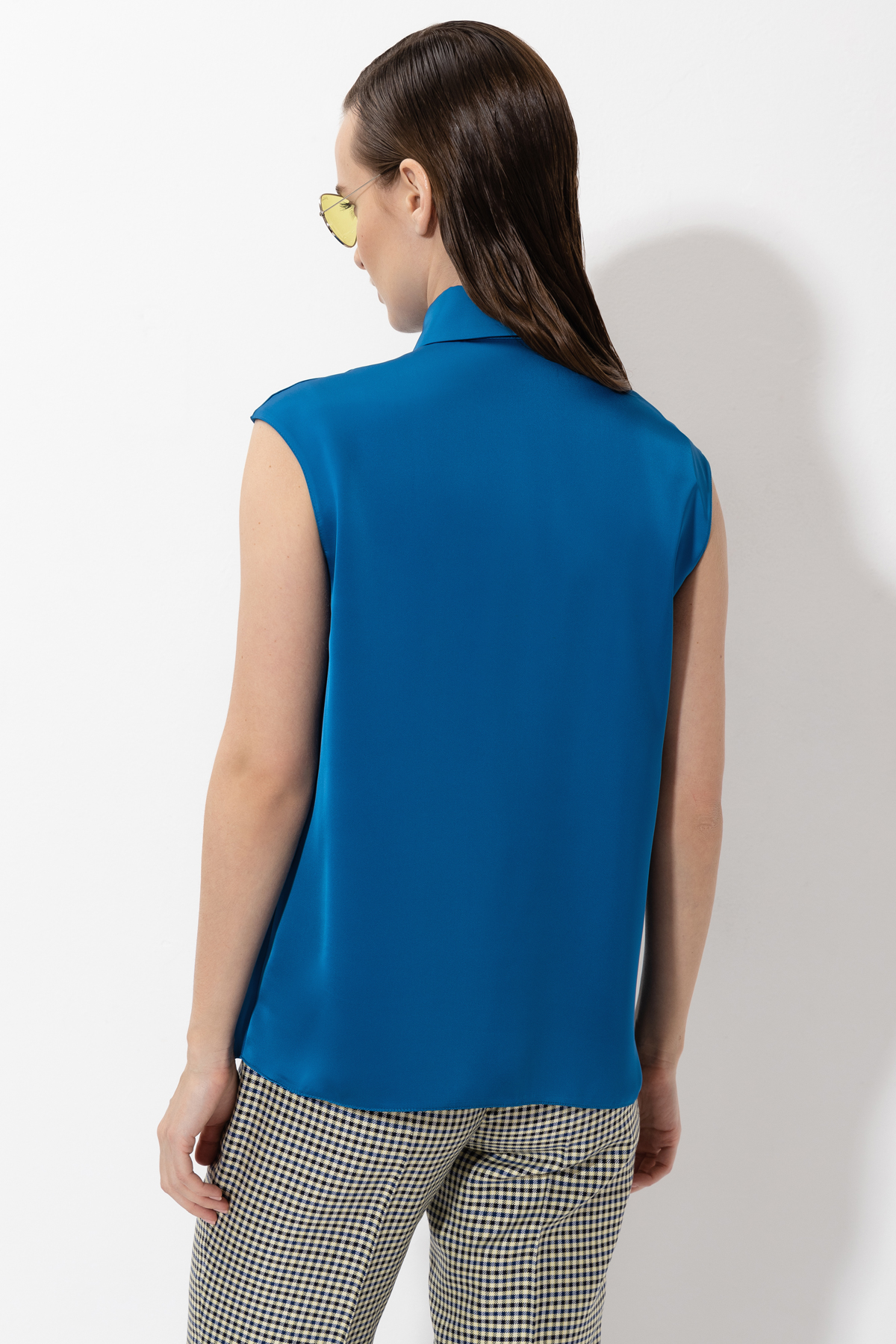 Базовая модель блузки приталенного силуэта из воздушной ткани с легким блеском. Детали: рубашечный воротник и пуговицы скрытые под планкой. Модель отлично дополнит деловой образ с юбкой или брюками. Изделие доступно в трех оттенках.