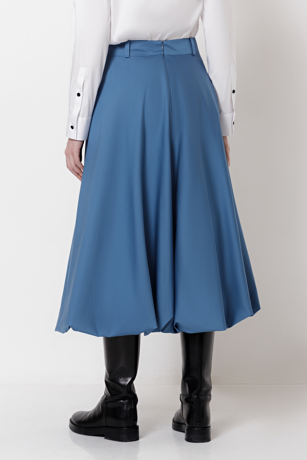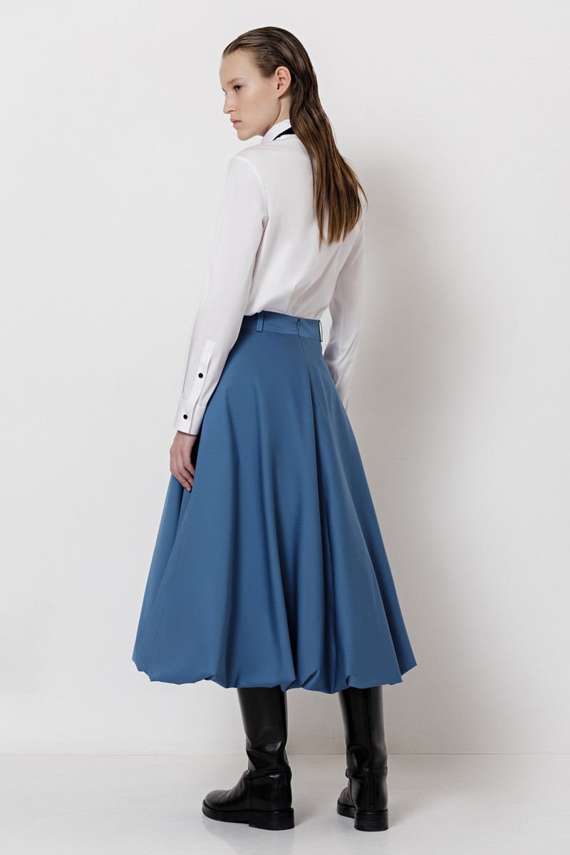 Струящаяся юбка-баллон из смесовой ткани на основе хлопка с легким атласным эффектом. Изделие дополнено поясом со шлевками и застежкой на потайную молнию. Модель отлично сочетается с укороченным топом, джемпером, блузкой или рубашкой.