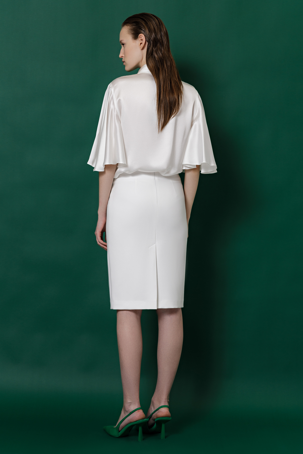 Лаконичная юбка в классической длине до колен из 100% вискозы. Модель прямого кроя дополнена шлицей на задней поверхности и застежкой на потайную молнию. Сочетайте юбку с жакетом из нашей коллекции, чтобы создать классический сет.