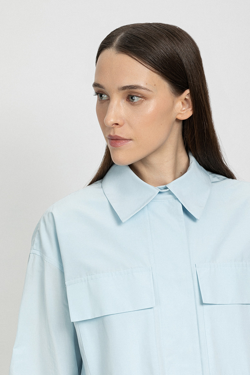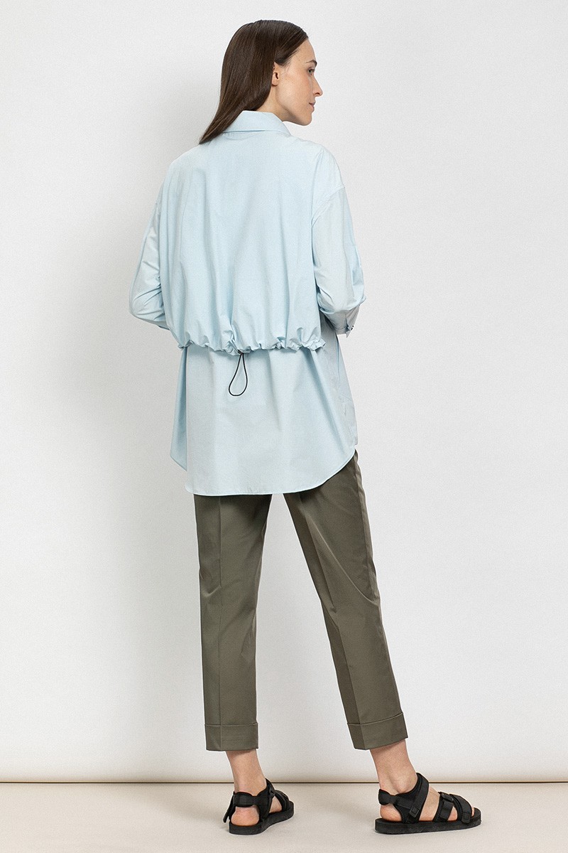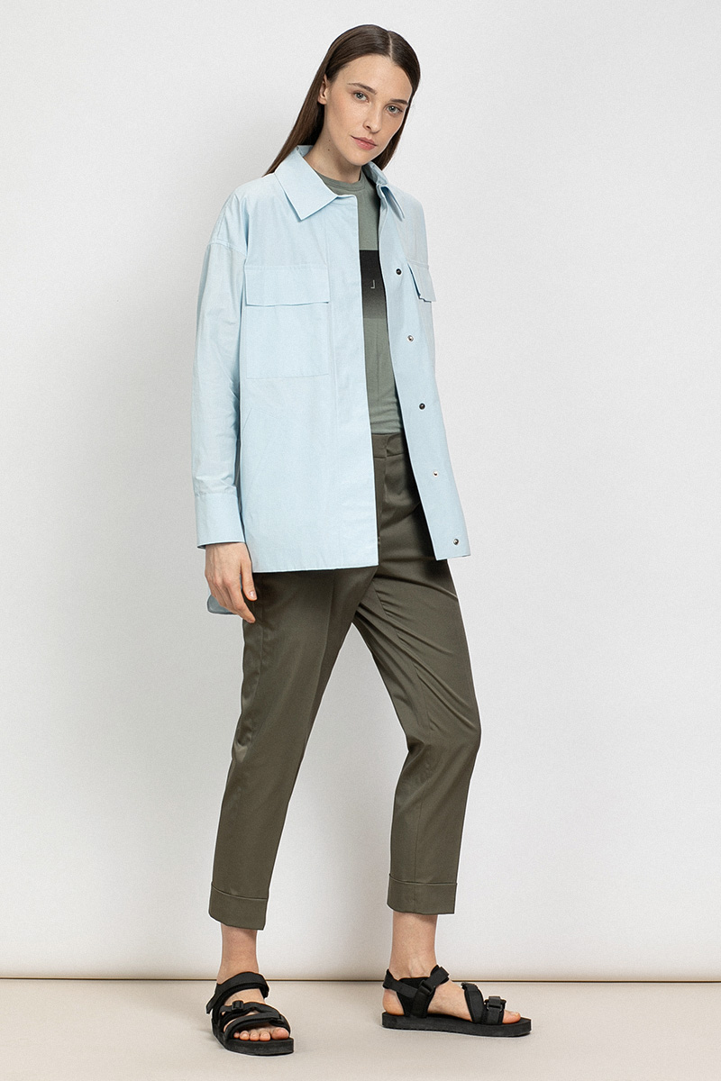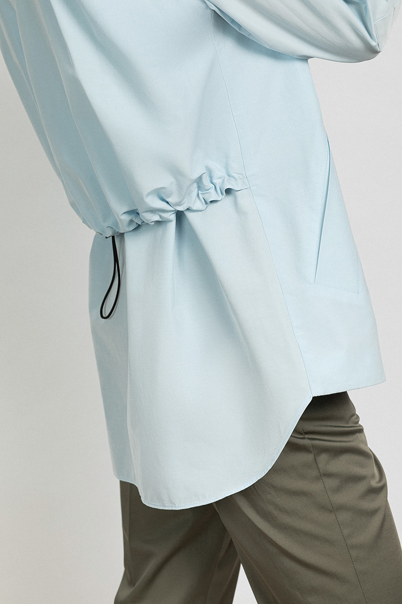 Ультарамодная куртка объемного силуэта, с накладными карманами и перепадом длины по низу. Степень затянутости кулисок дает возможность корректировать объем куртки.