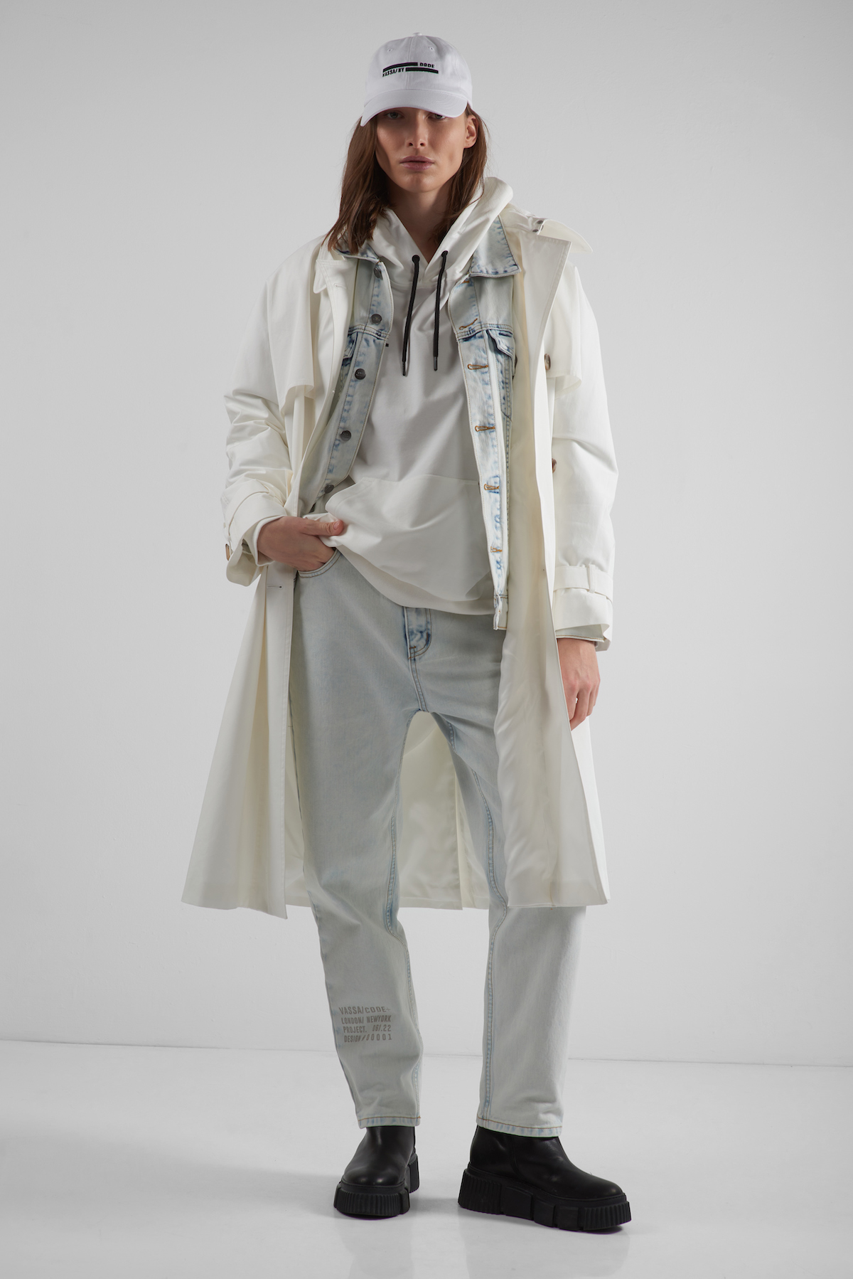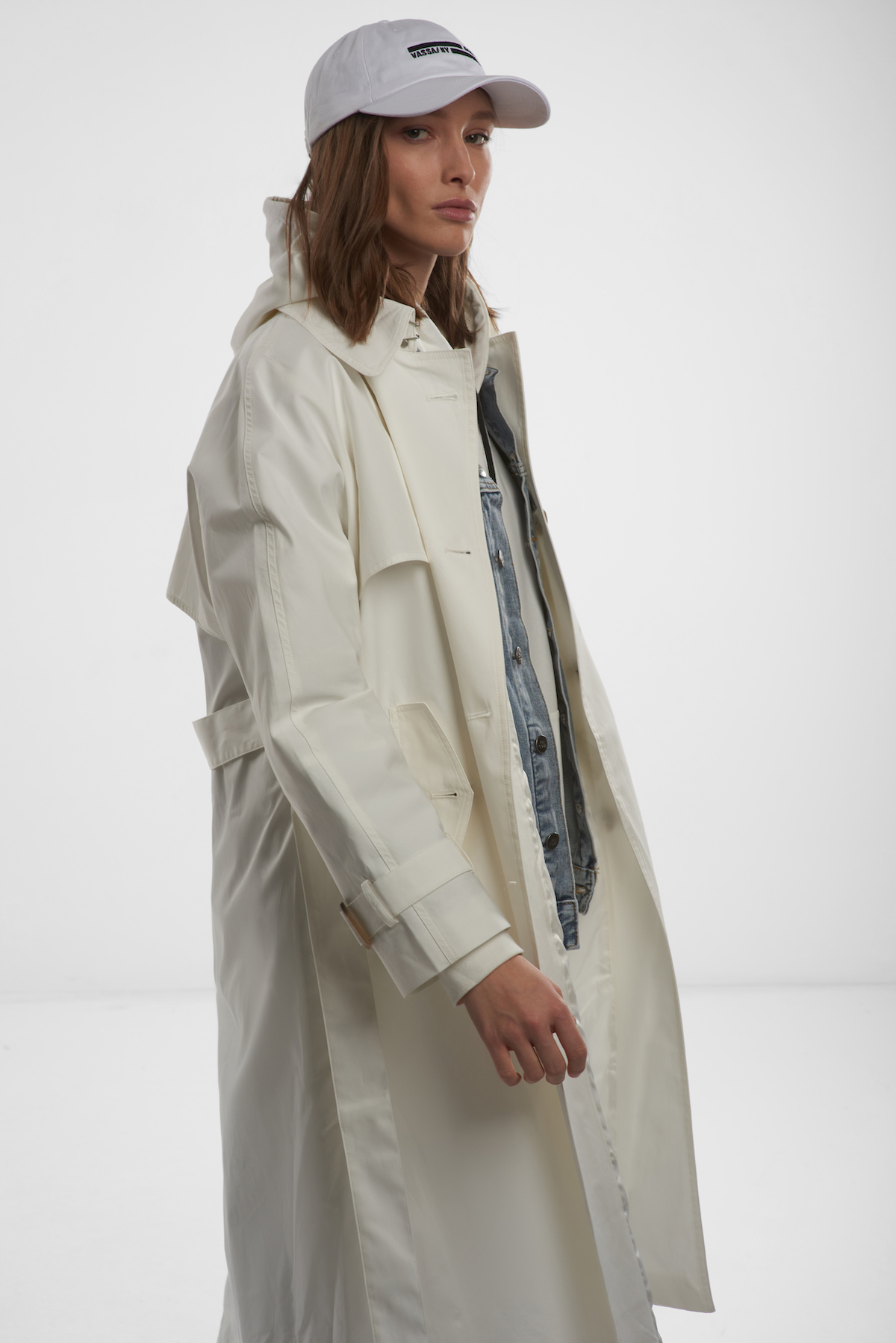Тренч в белом цвете с кокеткой
