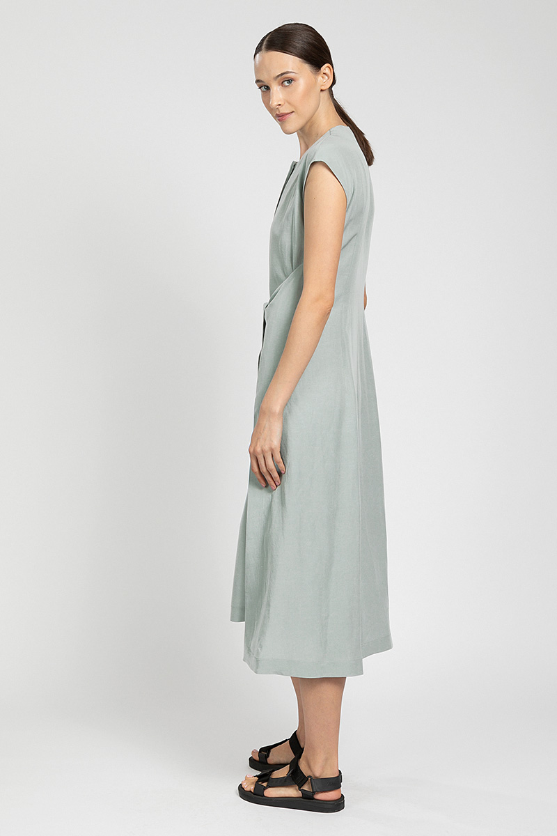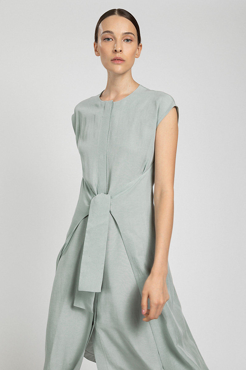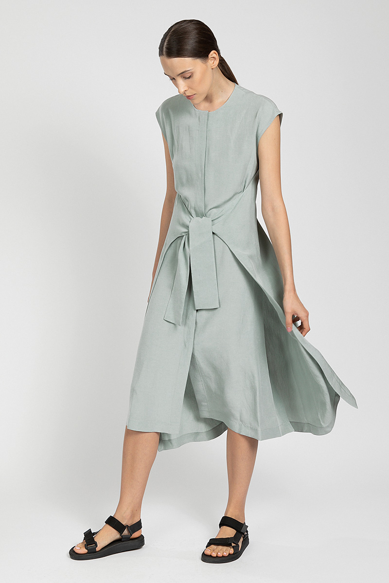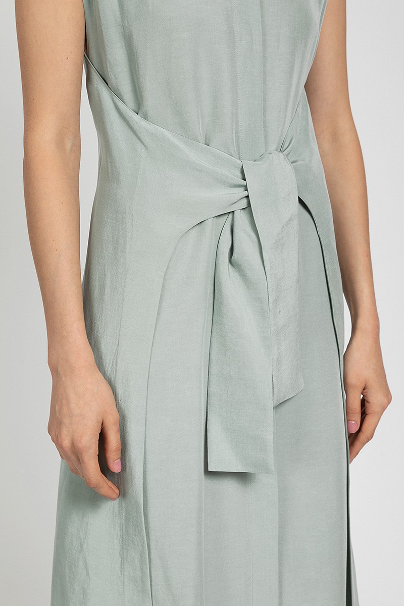 Стильное платье с интересным решением, в виде двух отлетных деталей, которые фиксируют талию и добавляют вариантативности решения образов.
