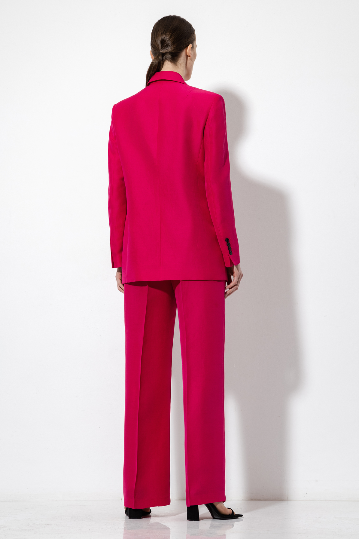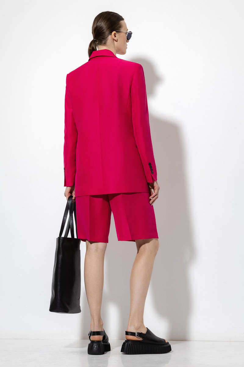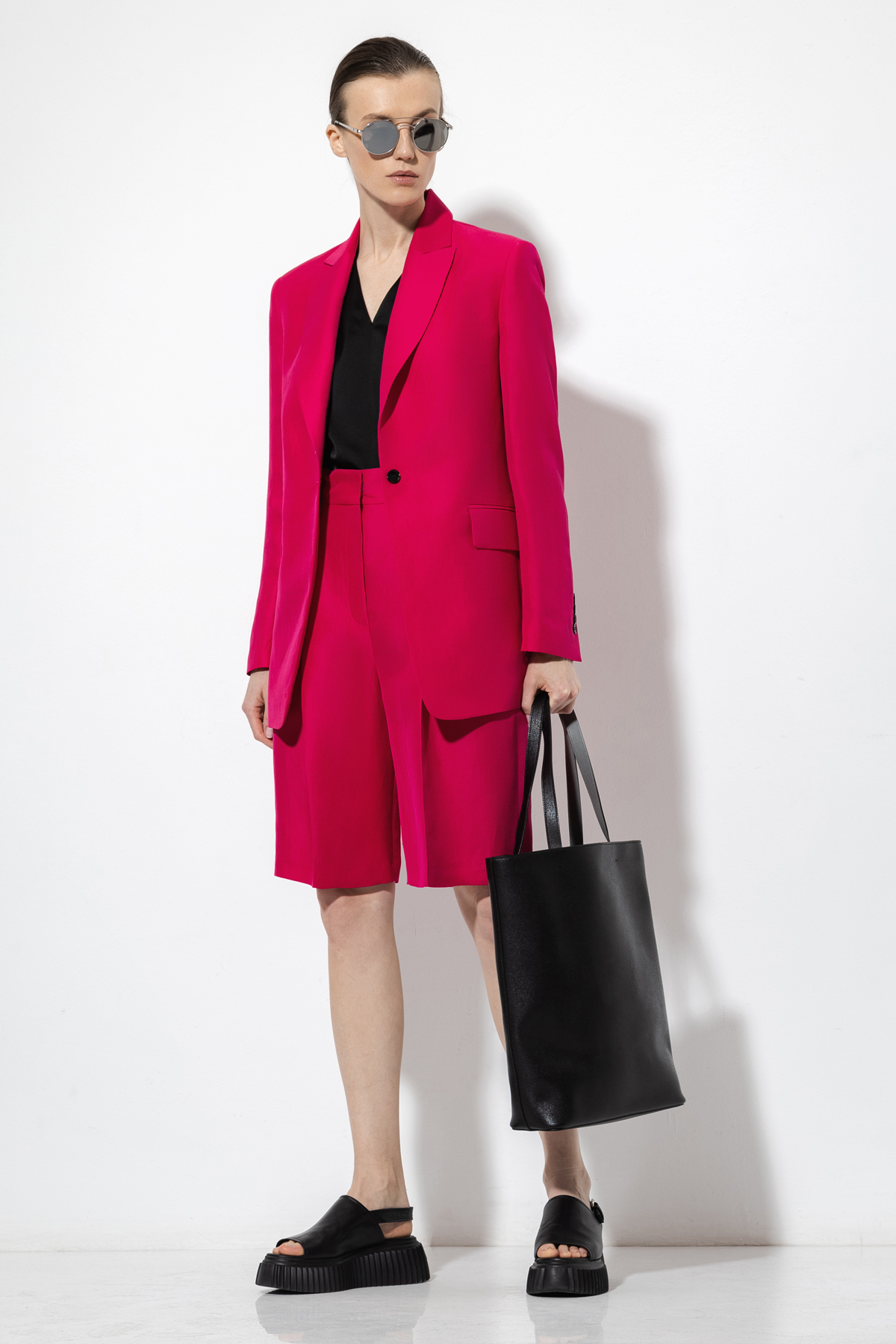 Классический однобортный жакет из микса вискозы и льна. Мягкая костюмная ткань обладает фактурой с легким блеском. Жакет дополнен контрастной пуговицей, имитацией карманов и графичными лацканами. Свободная посадка изделия не стесняет движений и обеспечивает комфорт в повседневной носке. В коллекции также представлены шорты и брюки в тон, с которыми жакет создаст идеальный деловой костюм для теплой погоды.
