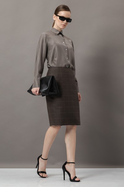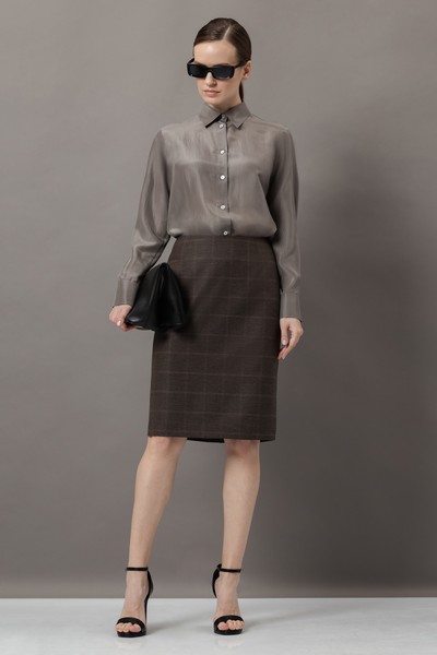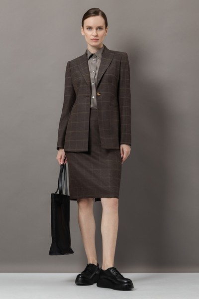 - прямую юбку в классической длине до колен со шлицей и застежкой на потайную молнию.