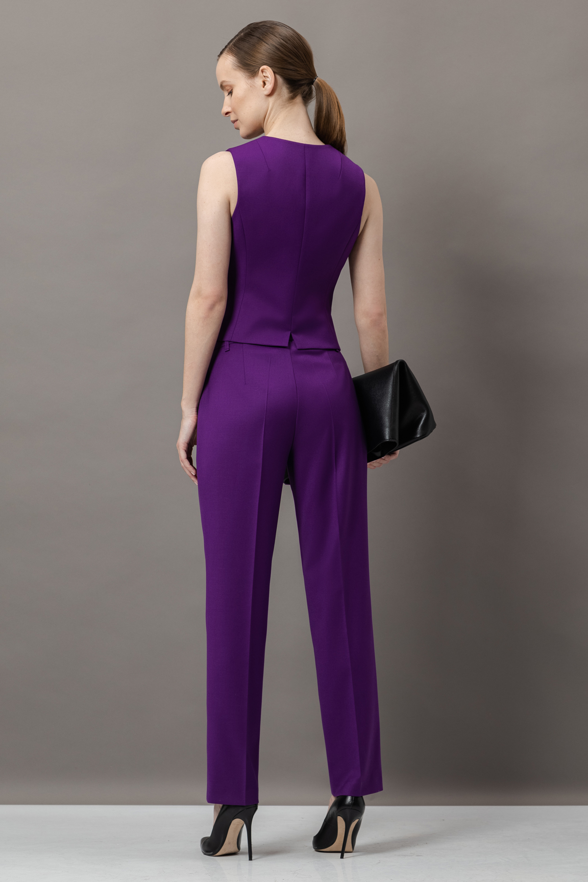 - лаконичный жилет приталенного кроя с пуговицами в тон и имитацией карманов;