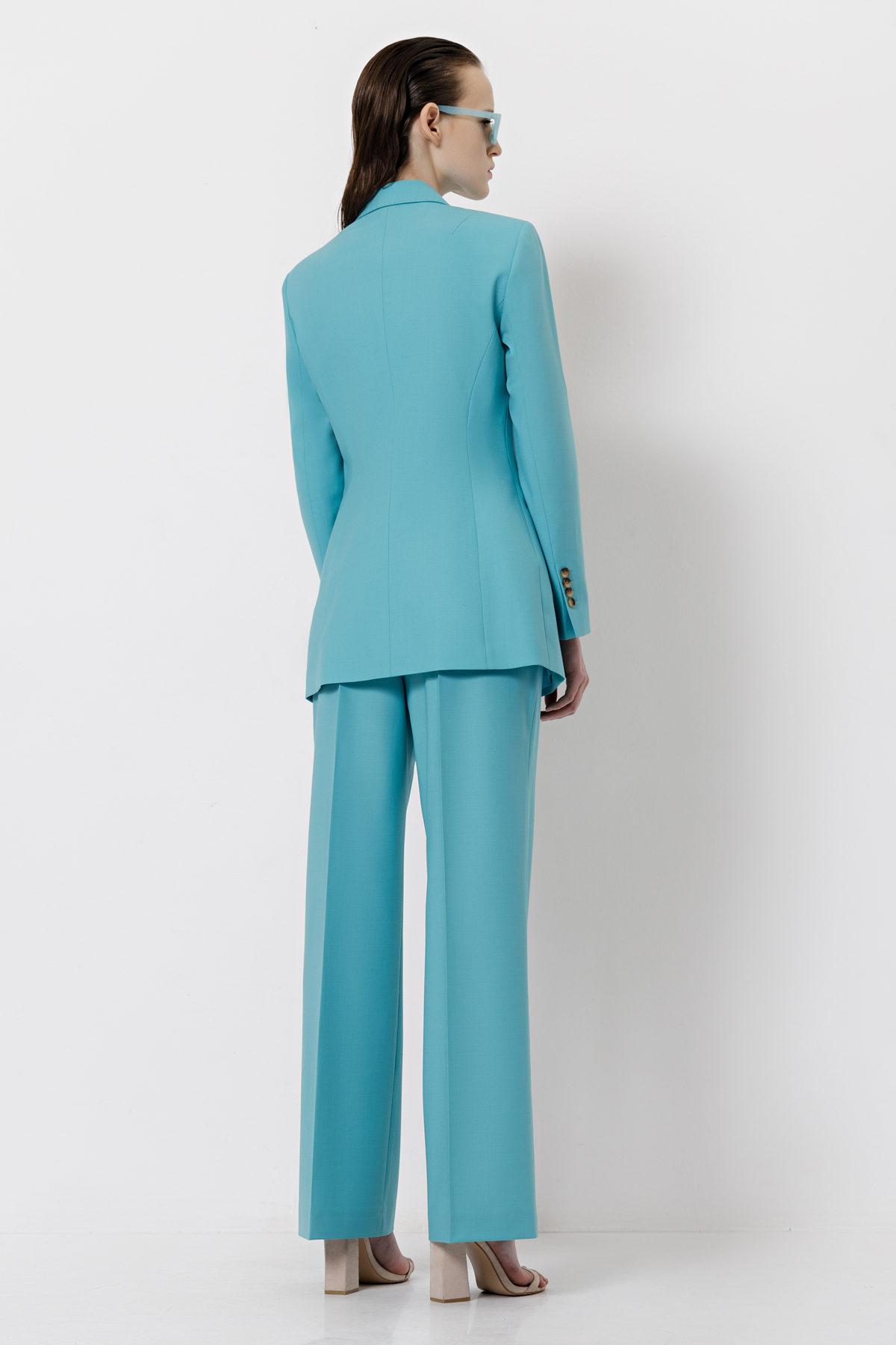 Костюм с двубортным жакетом, брюками и юбкой