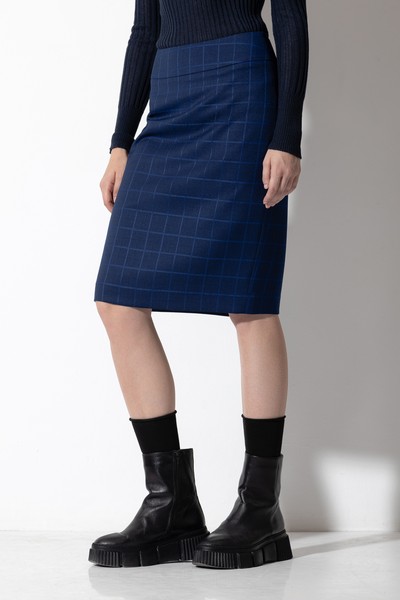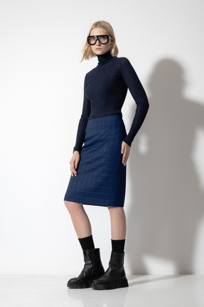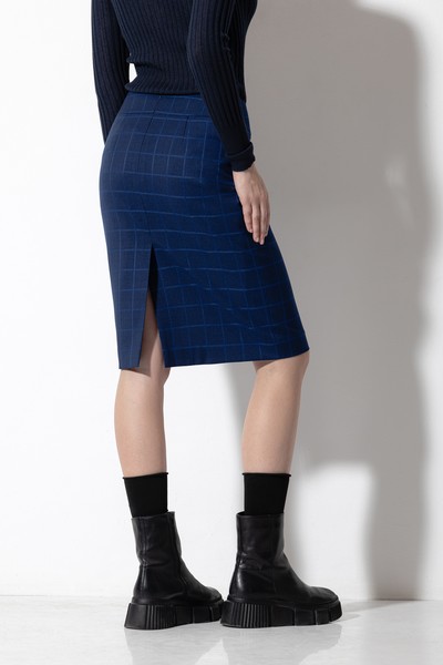 - прямую юбку в классической длине до колен с широким отрезным поясом и застежкой на потайную молнию.