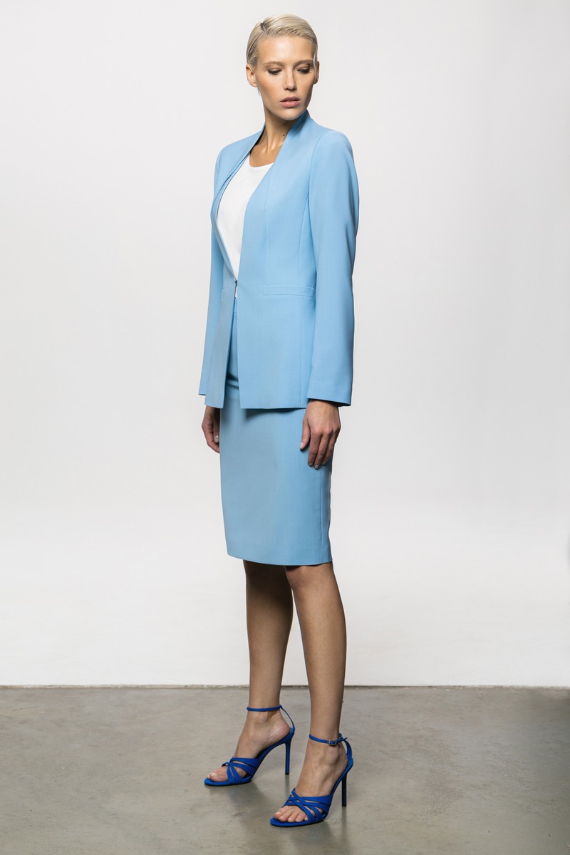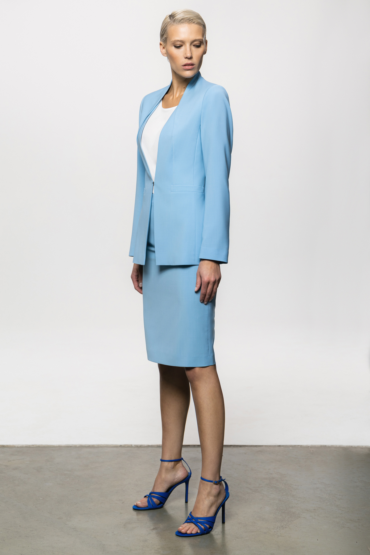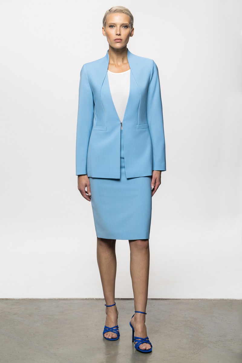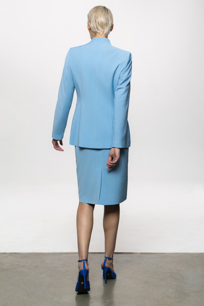 Костюм с удлиненным жакетом и юбкой в голубом оттенке