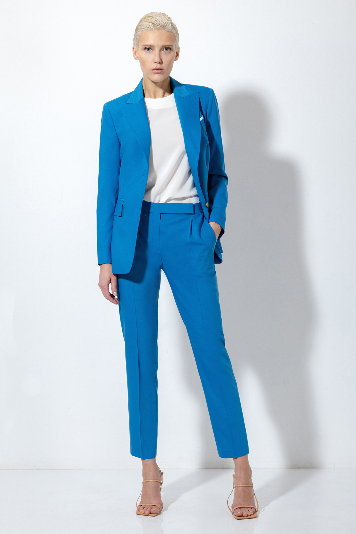 Лаконичный деловой сет из костюмной ткани с добавлением вискозы. В комплект входит классическая юбка-карандаш и приталенный жакет с имитацией кармана. Костюм доступен в размерной сетке plus-size.