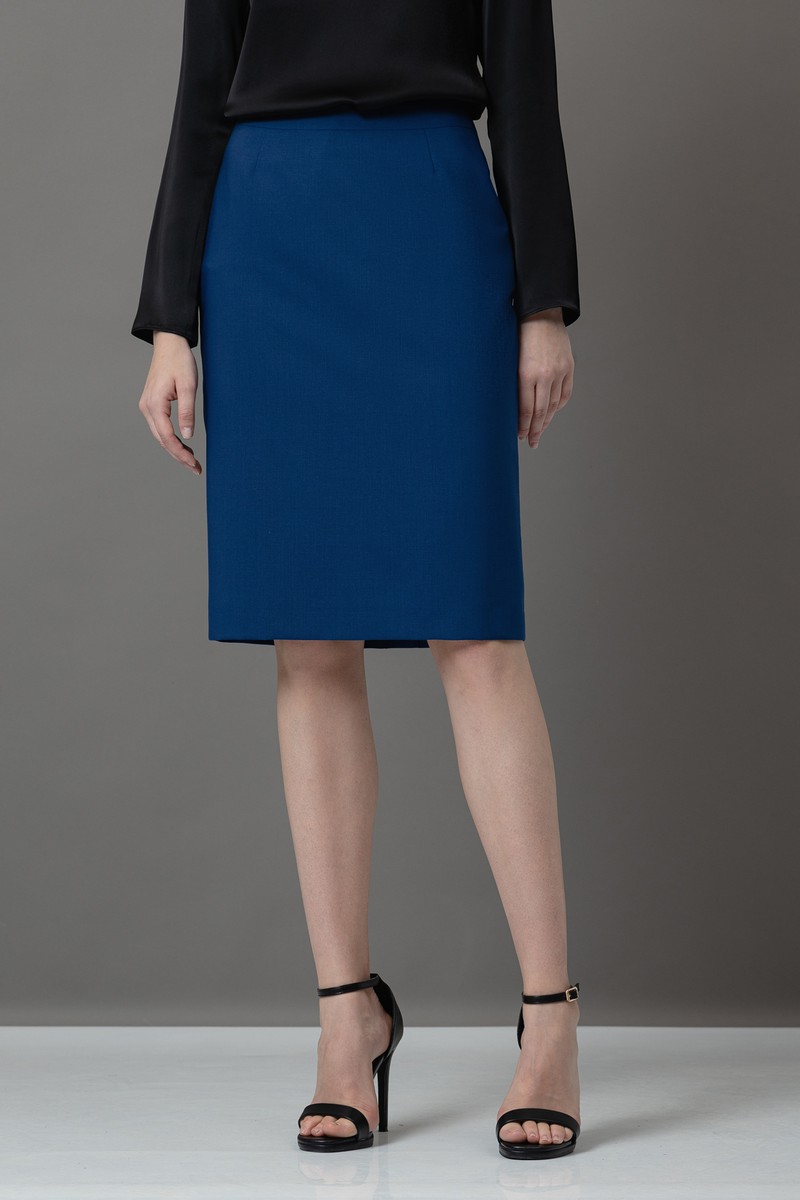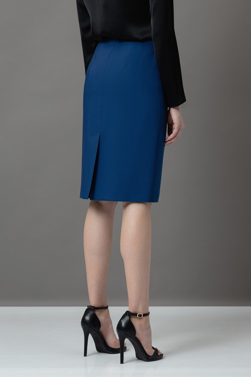 - прямую юбку в классической длине до колен со шлицей и застежкой на потайную молнию.
