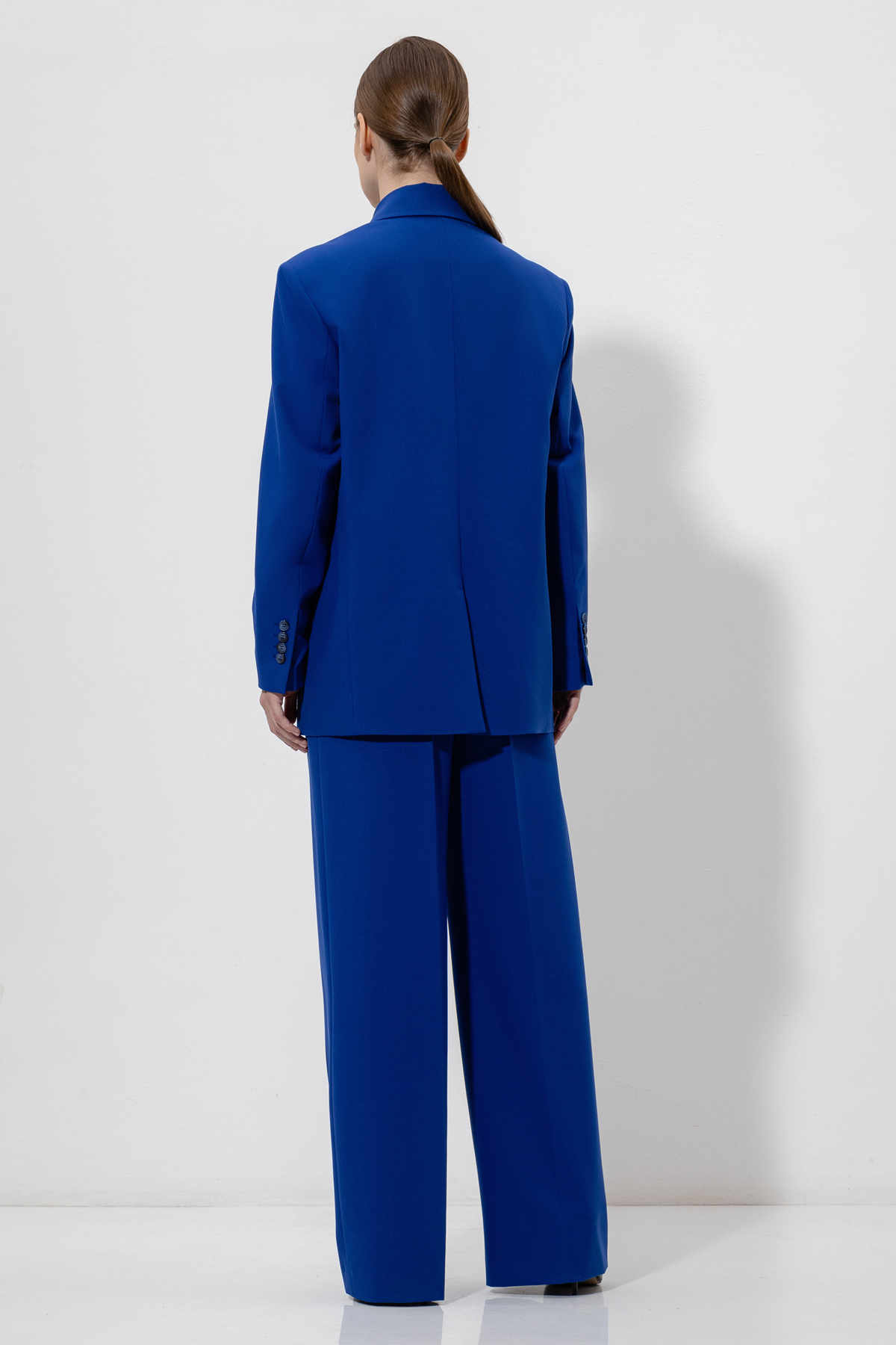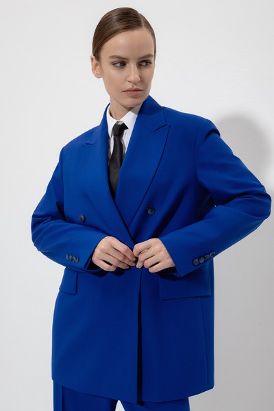 - двубортный жакет оверсайз с карманами с клапанами, широкими графичными лацканами и пуговицами в тон;