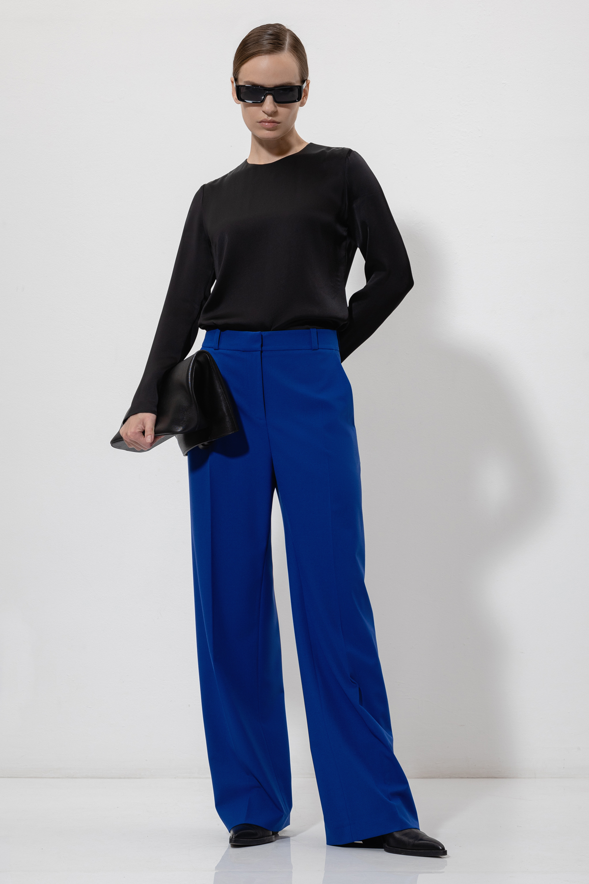 - широкие брюки с мягким поясом со шлевками, боковыми карманами и застежкой на потайную молнию и металлический крючок.