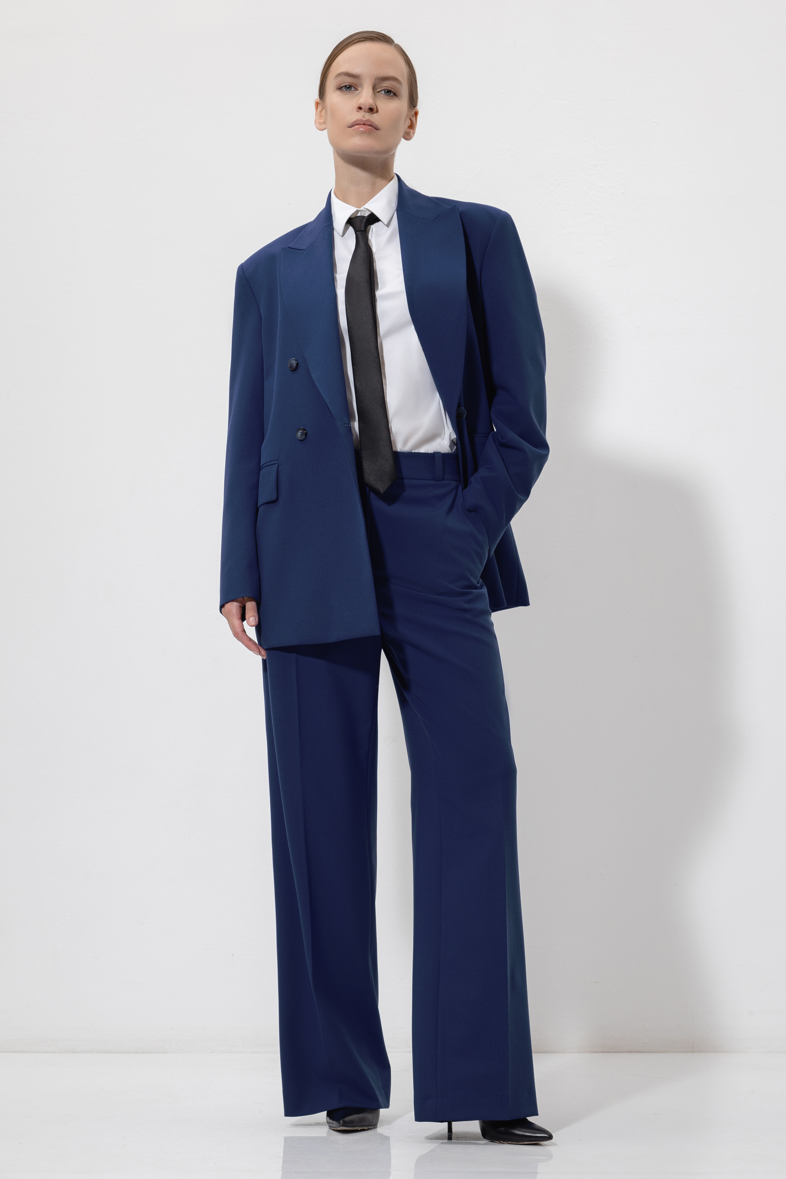 Костюм свободного кроя темно-синего цвета