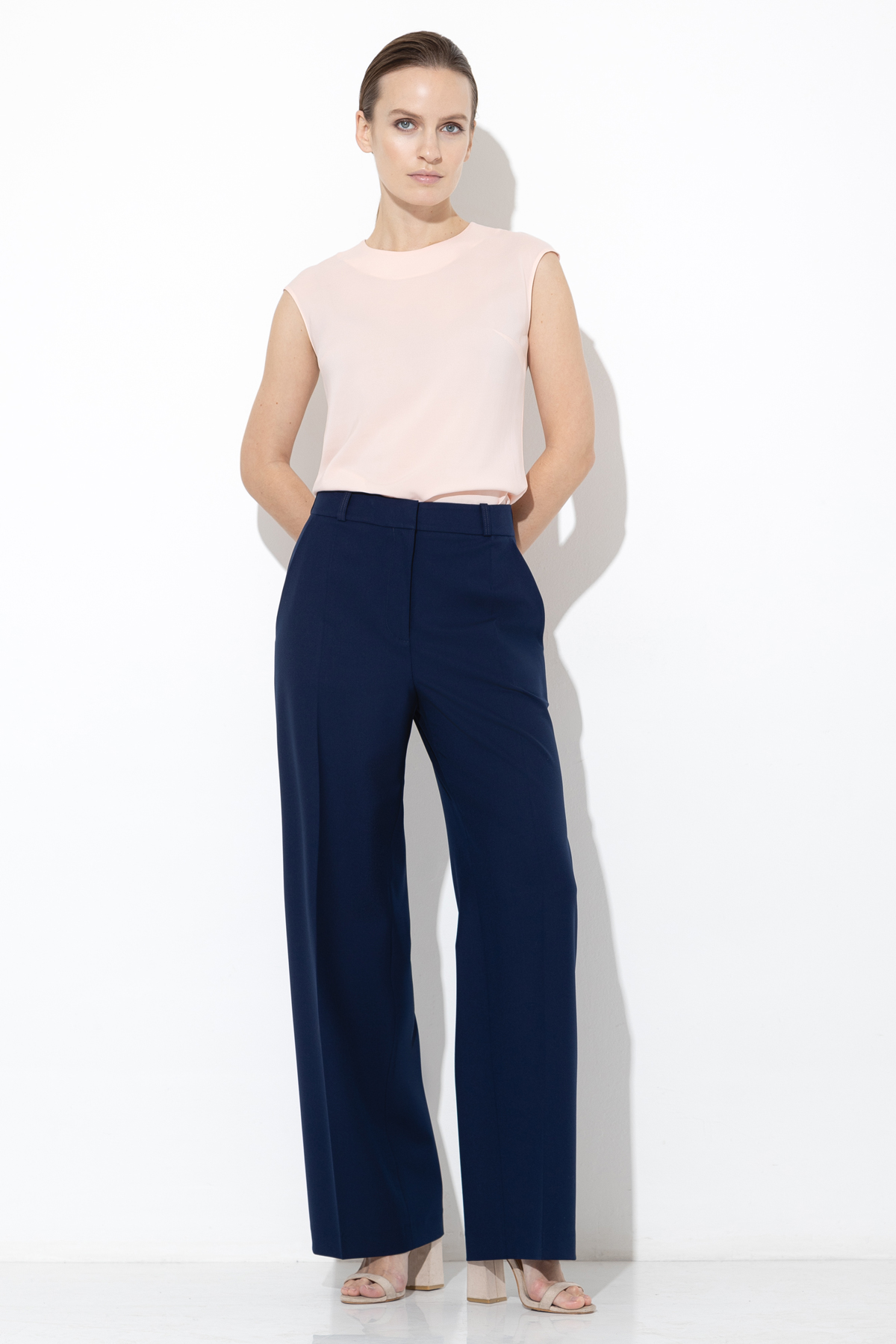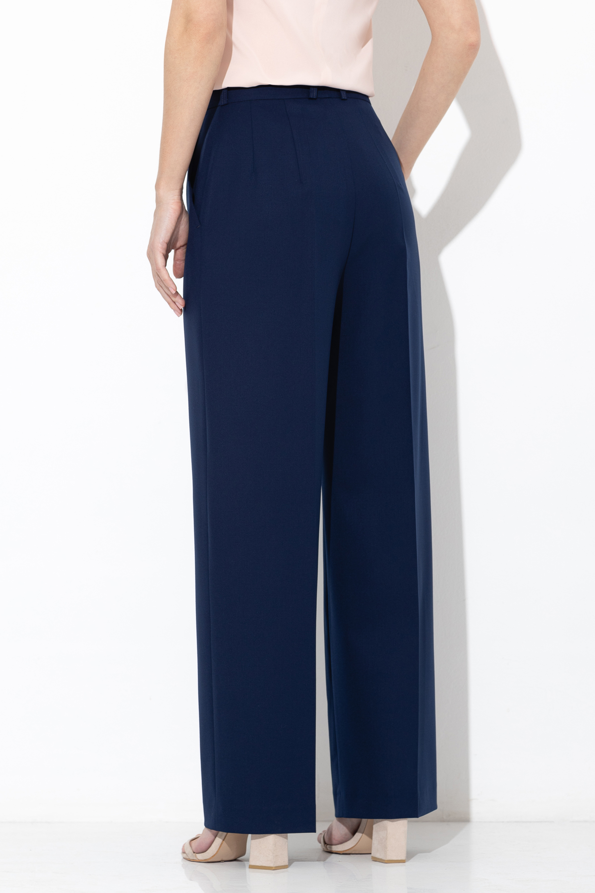 - широкие брюки с мягким поясом со шлевками, боковыми карманами и застежкой на потайную молнию и металлический крючок.
