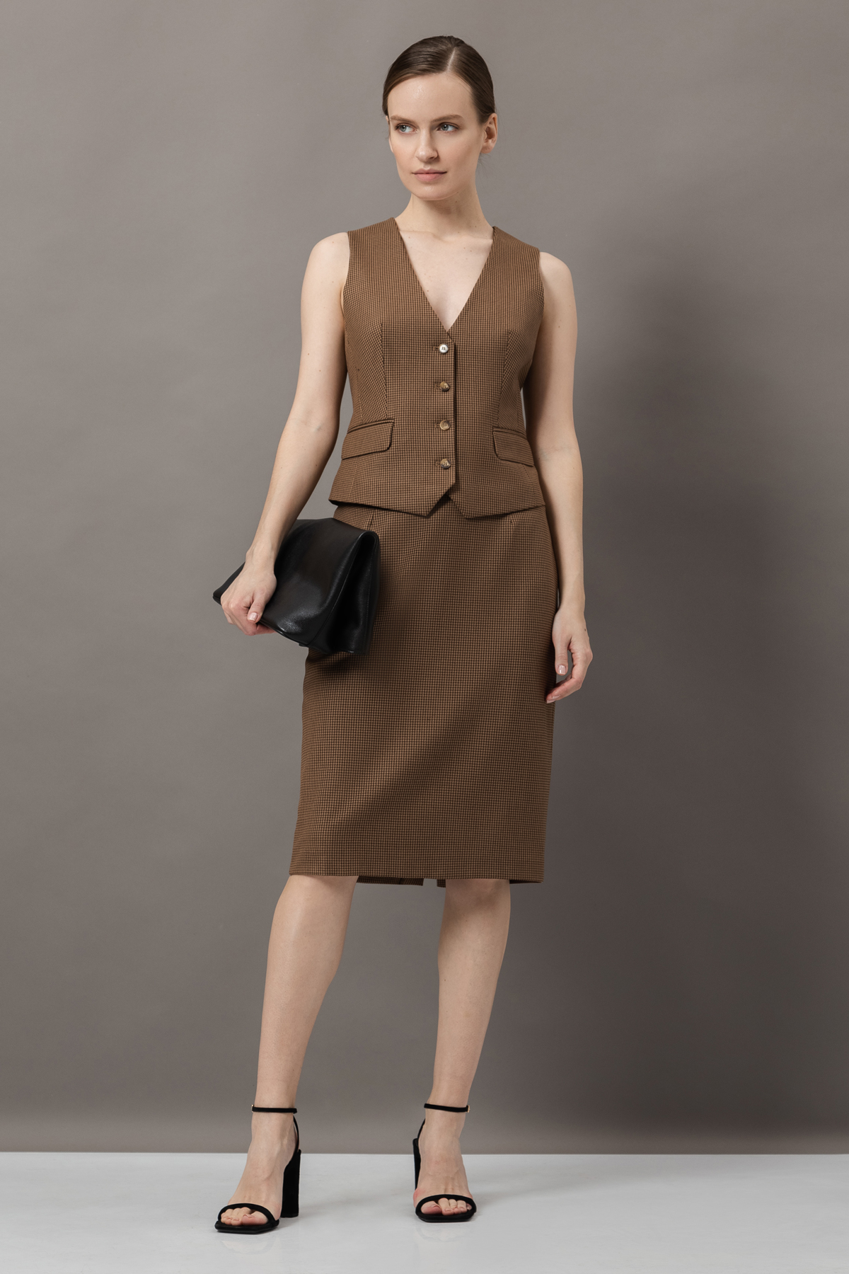 Костюм-тройка в мелкую клетку с брюками и юбкой