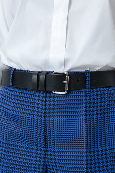 - базовые брюки с мягким поясом со шлевками и боковыми карманами и застежкой на потайную молнию и металлический крючок.