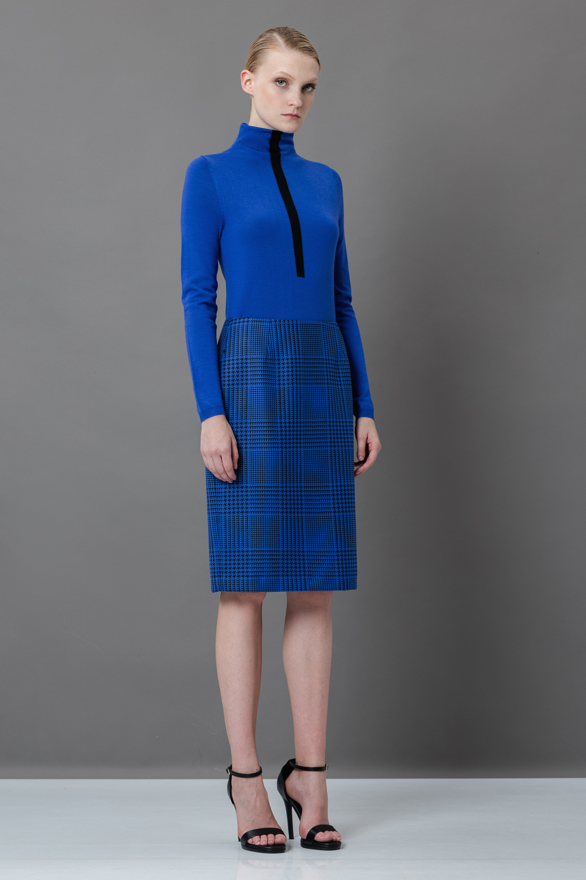 - прямую юбку в классической длине до колен со шлицей и застежкой на потайную молнию.