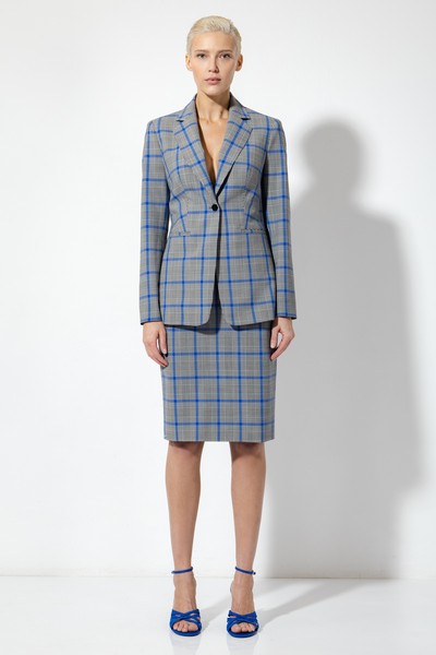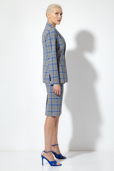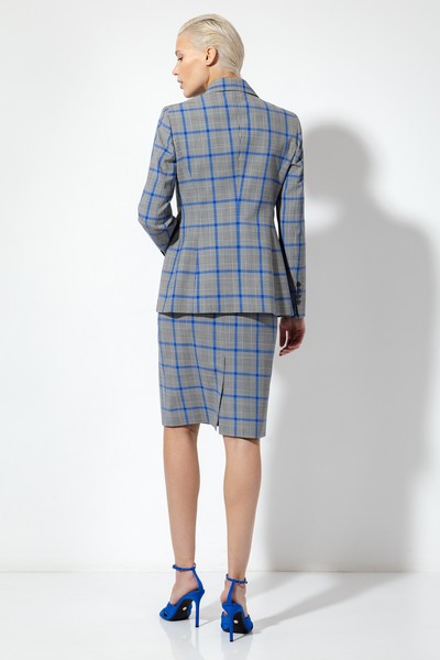 Классический костюм из смесовой ткани с актуальным принтом в клетку.