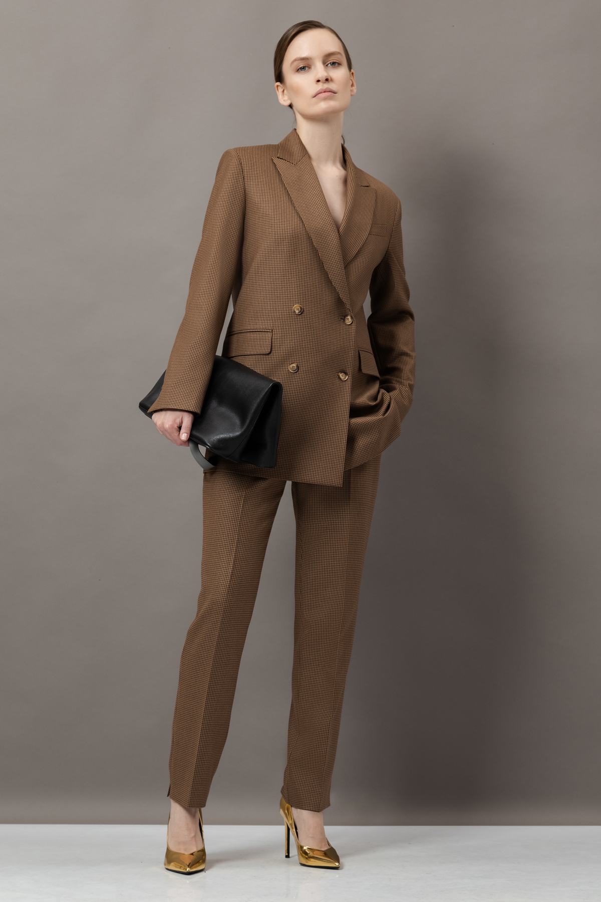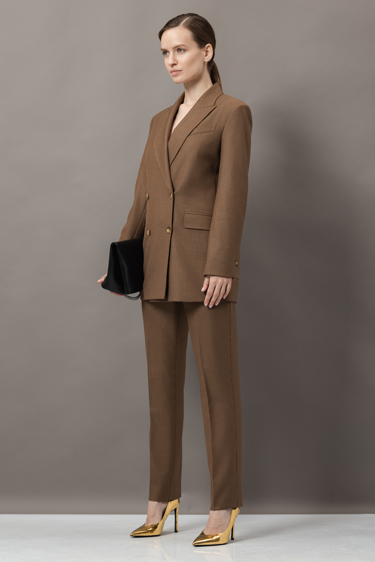 Костюм в мелкую клетку с брюками и юбкой